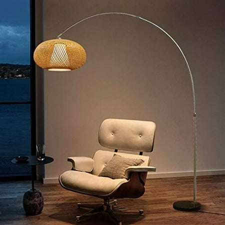 Floor Lamp Modern Contemporary Led Bedside Floor Lamp Bamboo Single Asia Standing Light With Arc Arm In Wood For Living Room Bedroom Study Room Office Size Large Typa Bowl Shade Walmart